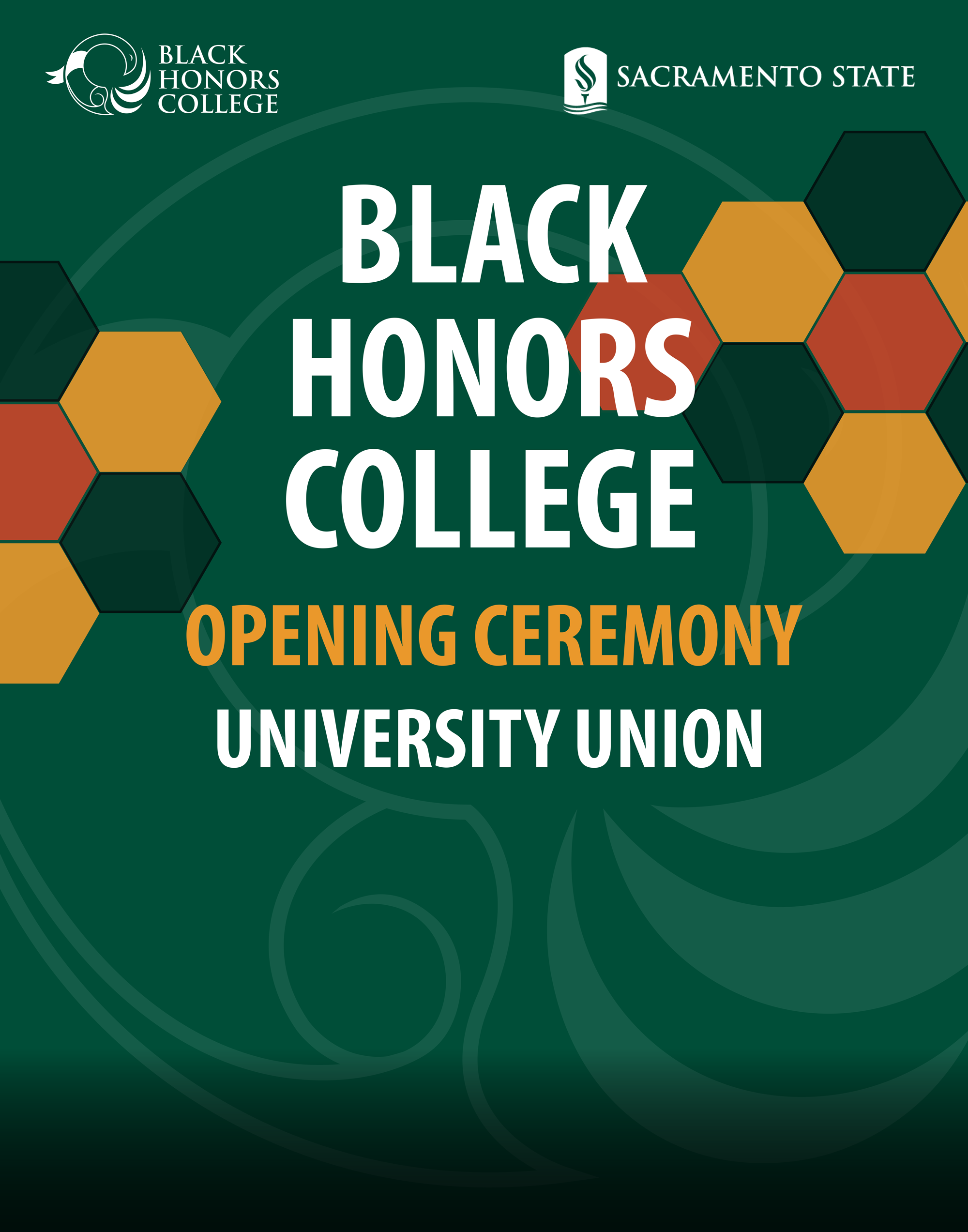 The colors incorporate Sacramento State’s university branding with Sac State Green and Sac State Gold. The burnt gold, pink, red, and blue are symbolic of African-American Greek sororities and fraternities, including: